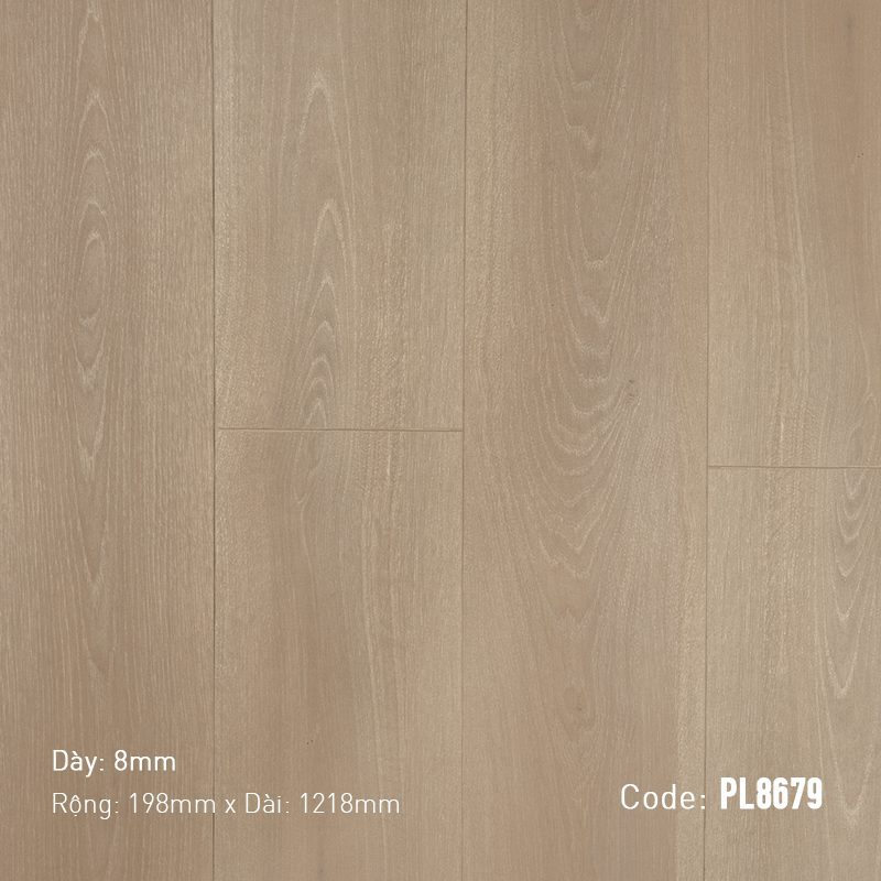 Kiểu vân gỗ trên mã PL8679 mô phỏng chân thực vân gỗ sồi (oak) quen thuộc. Các đường vân được tái hiện một cách tự nhiên, với sự kết hợp hài hòa giữa vân thẳng mảnh và những cụm vân núi (cathedral grain) nhẹ nhàng, uyển chuyển. Công nghệ in hiện đại đảm bảo từng chi tiết vân gỗ đều sắc nét, tạo nên một bề mặt sàn sống động, mô phỏng hoàn hảo sự đa dạng của gỗ tự nhiên mà vẫn giữ được tính đồng nhất về thẩm mỹ. Cảm nhận bề mặt được xử lý mờ mịn (matte finish), không chỉ giảm thiểu độ chói của ánh sáng mà còn giúp màu sắc và vân gỗ hiển thị trung thực nhất. Bề mặt này có khả năng được trang bị lớp vân gỗ chìm (embossed texture) hoặc độ sần nhẹ, tăng cường tính chân thực và đặc biệt là cải thiện đáng kể khả năng chống trơn trượt, đảm bảo an toàn cho mọi thành viên trong gia đình.