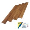 Điểm nhấn đặc biệt của HG606 nằm ở kiểu vân gỗ. Được thiết kế với sự tỉ mỉ cao, vân gỗ trên bề mặt mô phỏng chân thực vẻ đẹp của gỗ sồi hoặc các loại gỗ tự nhiên quý phái khác. Bạn sẽ thấy những đường vân thẳng chạy dọc theo chiều dài tấm ván, xen kẽ một cách tự nhiên với những cụm vân núi (cathedral grain) mềm mại và các mắt gỗ nhỏ được bố trí ngẫu nhiên. Sự kết hợp này tạo nên một bề mặt sống động, tránh xa cảm giác lặp lại nhàm chán thường thấy ở các loại sàn công nghiệp thông thường. Sự chuyển đổi tinh tế giữa các sắc độ nâu và vàng trong từng đường vân mang lại chiều sâu thị giác và tính thẩm mỹ cao. Vân gỗ có độ nét vừa phải, không quá nổi bật gây rối mắt nhưng đủ rõ ràng để thể hiện sự thanh lịch và đẳng cấp.