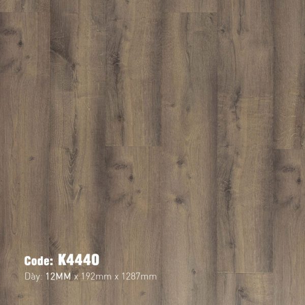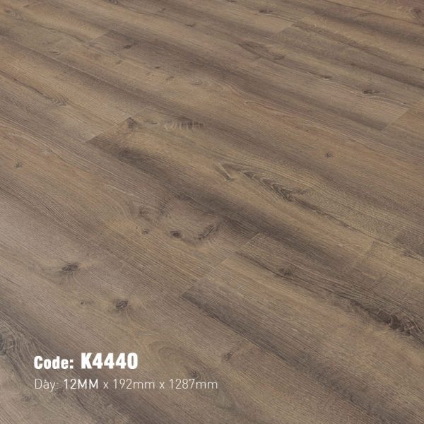 Vân gỗ trên sản phẩm K4440 mô phỏng vân gỗ sồi (oak) một cách chân thực đến ngỡ ngàng. Các đường vân chủ yếu chạy dọc theo chiều dài tấm ván, không hề đơn điệu mà có sự biến tấu nhẹ nhàng, kết hợp với mắt gỗ và thớ gỗ uốn lượn tự nhiên. Sự phân bố không đồng đều của các chi tiết này mang lại cảm giác gần gũi, mộc mạc như gỗ tự nhiên, tránh xa sự lặp lại thường thấy ở các vật liệu nhân tạo. Độ sắc nét của vân gỗ vừa phải, không quá thô cứng, thể hiện sự cân bằng giữa vẻ đẹp nguyên bản và nét tinh xảo trong chế tác. Sự chuyển màu khéo léo giữa các thớ gỗ, từ nâu nhạt sang nâu sẫm, tạo nên hiệu ứng thị giác phong phú, thu hút mọi ánh nhìn.