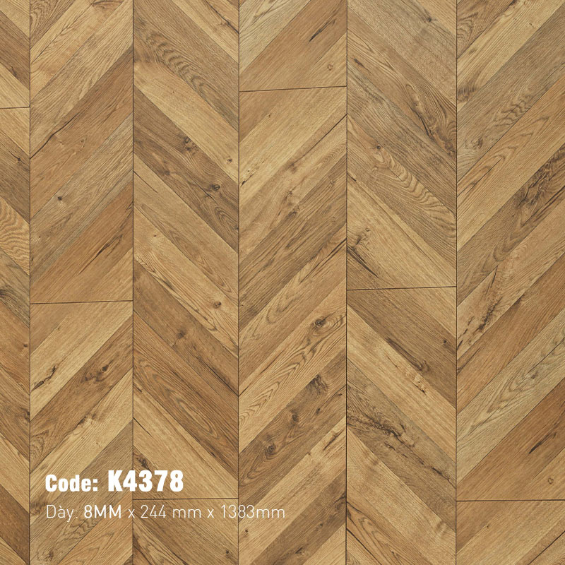 - Độ Bền Cao: Với độ dày 12mm và khả năng chống trầy xước, chống mài mòn tốt, sàn K4378 có tuổi thọ cao, chịu được tác động từ việc đi lại hàng ngày, đồ đạc và vật nuôi.