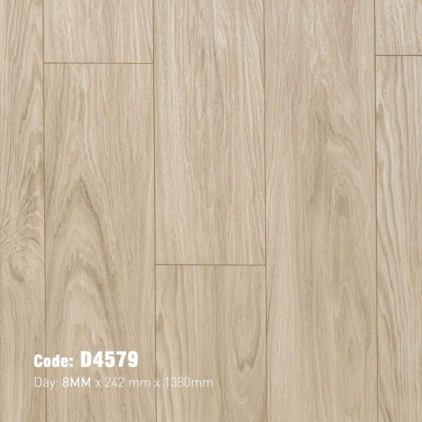 Ngay từ cái nhìn đầu tiên, Sàn Gỗ Kronopol Aqua Zero Movie D4579 – 8mm/AC5 đã chinh phục bởi tông màu vàng kem sáng (light beige) làm chủ đạo. Màu sắc này không quá chói chang nhưng đủ để làm bừng sáng mọi căn phòng, tạo cảm giác tươi mới và tràn đầy năng lượng. Sự pha trộn tinh tế của các ánh sắc xám nhạt và trắng ngà trên bề mặt vân gỗ sồi tự nhiên mang đến một tổng thể hài hòa, hiện đại và cực kỳ linh hoạt trong phối cảnh nội thất. Dù không gian của bạn nhận được nhiều hay ít ánh sáng tự nhiên, gam màu trung tính này đều có khả năng tối đa hóa cảm giác rộng rãi, thoáng đãng, mở ra một bầu không khí thư thái và dễ chịu.