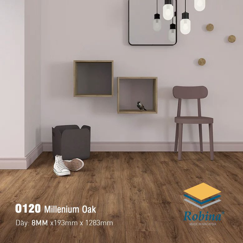 Hoàn toàn đủ bền. Độ dày 8mm kết hợp với cốt gỗ HDF mật độ cao và lớp phủ bề mặt AC4 giúp sàn chịu được mật độ đi lại thông thường trong gia đình và các khu vực thương mại nhẹ. - Sàn Robina O120 có khả năng chống nước tốt không?