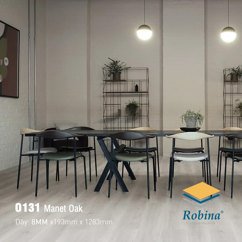 Bước vào không gian sống và làm việc hiện đại, nơi sự tinh tế và thanh lịch hòa quyện, bạn sẽ cảm nhận ngay sức hút đặc biệt từ dòng sản phẩm Sàn Gỗ Robina 8mm Bản Lớn O131. Đây không chỉ là vật liệu lát sàn thông thường, mà là một tuyên ngôn phong cách, mang đến vẻ đẹp sang trọng và cảm giác thoáng đãng cho mọi căn phòng. Với tông màu xám sáng chủ đạo, mã O131 Manet Oak tái hiện chân thực vẻ đẹp của gỗ sồi tự nhiên, nhưng được khoác lên mình một “tấm áo” hiện đại, dễ dàng chinh phục những gia chủ yêu thích sự tối giản, Scandinavian hay Industrial.