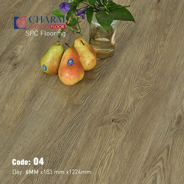 Sản phẩm Sàn Nhựa Hèm Khóa Charm Wood 6mm Đế Cao Su SPC04 có quy cách: