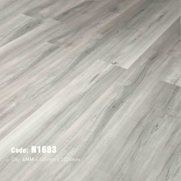 Kiểu vân gỗ trên tấm ván Kosmos N1683 được thiết kế mô phỏng vân gỗ sồi hoặc tần bì đã qua xử lý màu, đặc trưng bởi các đường vân thẳng và lượn sóng nhẹ nhàng chạy dọc theo chiều dài. Vân gỗ được tái hiện một cách khéo léo, không quá dày đặc hay phức tạp, thể hiện sự tinh giản, thanh thoát. Ngay cả những chi tiết nhỏ như mắt gỗ hay sự chuyển màu trong từng thớ gỗ cũng được chăm chút tỉ mỉ, góp phần tăng thêm vẻ đẹp chân thật. Dù là vân nhân tạo, nhưng cách thiết kế và sắp xếp vân mang lại cảm giác mềm mại, tự nhiên, không hề thô cứng, tạo nên một bề mặt sàn đầy tính thẩm mỹ.