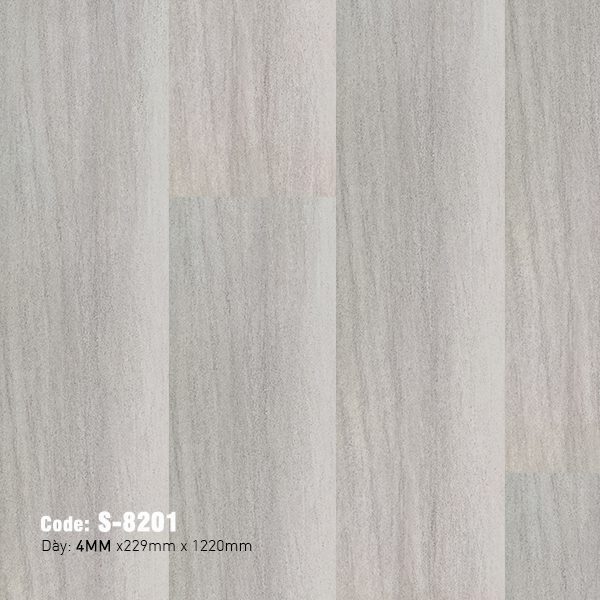 Kiểu vân của MSF-S8201 được thiết kế đặc biệt để mô phỏng chân thực vân đá tự nhiên, cụ thể là dạng thớ hoặc gợn nhẹ, chạy dọc theo chiều dài của mỗi tấm sàn. Các đường vân này được tạo hình mảnh mai, không quá sắc nét hay đậm đặc, mang đến vẻ đẹp tinh tế và hiện đại. Chúng gợi liên tưởng đến bề mặt của đá vôi được mài mịn hoặc hiệu ứng bê tông xoa nghệ thuật đầy tính ứng dụng. Để đạt được độ tự nhiên cao nhất, các nhà thiết kế đã khéo léo tạo ra sự biến đổi nhẹ nhàng trong sắc độ và đường nét của vân, tránh sự lặp lại cứng nhắc. Khi lắp đặt, các đường vân tiếp nối hoặc ngắt quãng một cách duyên dáng giữa các tấm, tái hiện lại chân thực cách ốp lát đá tự nhiên, mang đến một tổng thể hài hòa và ấn tượng.