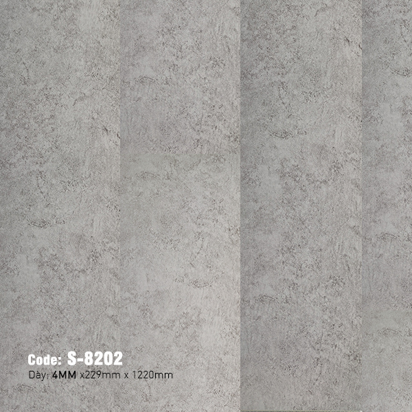 Kiểu vân giả đá trên bề mặt MSF-S8202 là một điểm nhấn thiết kế đáng chú ý. Thay vì các họa tiết lặp đi lặp lại một cách máy móc, vân sàn được mô phỏng theo các đặc điểm không đồng nhất của vật liệu tự nhiên. Bạn sẽ thấy những vết loang màu, các đốm nhỏ li ti và những đường rạn nứt tế vi được phân bố ngẫu nhiên trên mỗi tấm ván. Điều này tạo ra sự độc đáo cho từng tấm và mang lại tính chân thực cao cho tổng thể bề mặt sàn khi lắp đặt. Vân có độ chuyển mềm mại giữa các mảng màu, không quá gai góc hay tương phản mạnh, tạo cảm giác dễ chịu cho thị giác và phù hợp với nhiều phong cách thiết kế, từ tối giản như Muji đến mạnh mẽ như công nghiệp (Giấy Dán Tường Giả Gạch Đá Bê Tông).