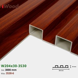 Tổng kết lại, Lam Nhựa PVC 3 Sóng Cao W204x30 Iwood 3S30-6 là một giải pháp Ốp Trần-Ốp Tường Trong Nhà mang tính đột phá, kết hợp hoàn hảo vẻ đẹp sang trọng của gỗ tự nhiên với những ưu điểm vượt trội của vật liệu PVC hiện đại. Từ màu sắc nâu đỏ đậm ấm áp, vân gỗ thẳng tinh tế đến thiết kế 3 sóng cao độc đáo, sản phẩm này chắc chắn sẽ nâng tầm thẩm mỹ cho mọi không gian nội thất. Với độ bền cao, khả năng chống ẩm, chống mối mọt, dễ dàng vệ sinh và lắp đặt nhanh chóng, Lam Nhựa PVC 3 Sóng Cao W204x30 Iwood 3S30-6 xứng đáng là lựa chọn hàng đầu cho những ai tìm kiếm sự kết hợp giữa vẻ đẹp, chất lượng và tính tiện dụng. Đây là một dòng sản phẩm tiêu biểu của Lam Nhựa Iwood, khẳng định vị thế trên thị trường vật liệu trang trí.