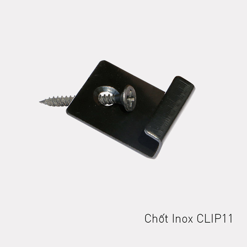 Clip11 chủ yếu được thiết kế để sử dụng cho các loại vật liệu có hèm khóa chuyên dụng cho lắp đặt ẩn, phổ biến nhất là Gỗ Nhựa Ngoài Trời, tấm ốp tường/trần ngoại thất và Lam Ngoài Trời composite. - Tại sao nên chọn clip bằng inox thay vì kim loại khác?