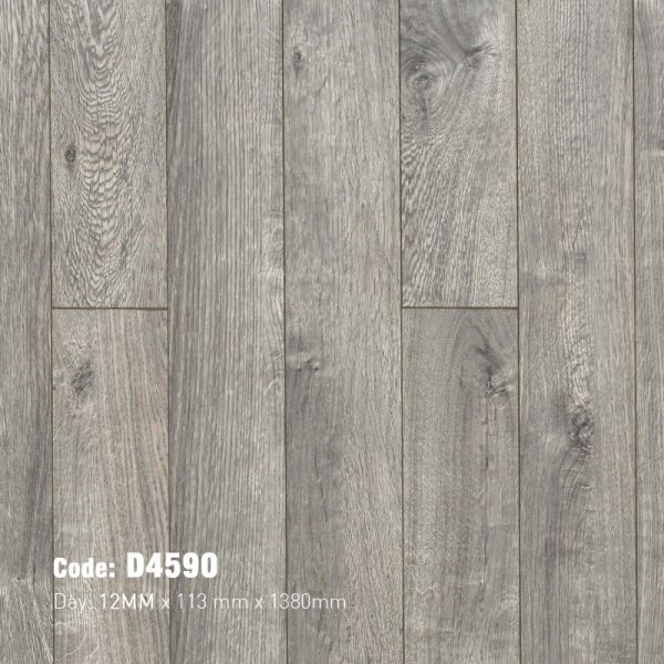 Kiểu vân gỗ trên D4590 được mô phỏng một cách chân thực từ vân gỗ sồi (oak) tự nhiên. Những đường vân thẳng đặc trưng của gỗ sồi xen kẽ hài hòa với các đường cong nhẹ nhàng, cùng với sự tái hiện tinh tế của mắt gỗ và các chi tiết đặc trưng khác, tạo nên một bề mặt sàn sống động và giàu tính thẩm mỹ. Sự phân bổ vân gỗ trên mỗi tấm ván được thiết kế một cách ngẫu nhiên, tự nhiên, tránh được sự lặp lại đơn điệu thường thấy ở các loại Sàn Gỗ Công Nghiệp kém chất lượng. Điều này mang lại cảm giác về một bề mặt gỗ đã trải qua thời gian, có chút phong hóa nhẹ, tạo nên vẻ đẹp mộc mạc nhưng vẫn giữ được nét sang trọng, tinh tế.