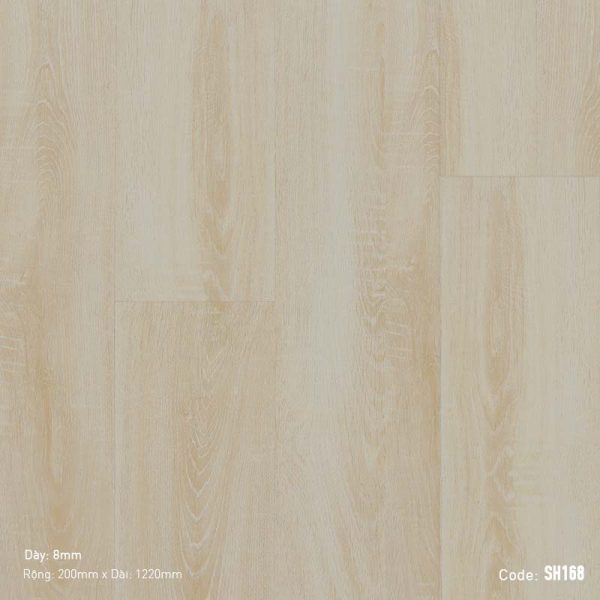 Độ dày 8mm là tiêu chuẩn phổ biến cho sàn gỗ công nghiệp sử dụng trong gia đình hoặc khu vực thương mại có mật độ đi lại vừa phải. Kết hợp với cốt gỗ HDF hoặc SPC/LVT chất lượng và lớp phủ bề mặt chống mài mòn, SH168 đảm bảo độ bền ổn định cho mục đích sử dụng nội thất thông thường. - Làm thế nào để vệ sinh sàn SH168 hiệu quả nhất?