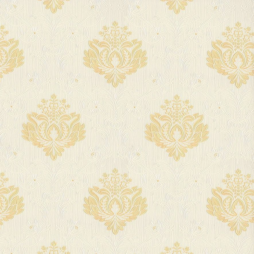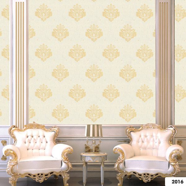 Vẻ đẹp của Vải Dán Tường Harmony Classic 2016 toát lên từ sự kết hợp màu sắc và họa tiết được tính toán kỹ lưỡng. Tông màu chủ đạo là sự pha trộn đầy tinh tế giữa màu trắng ngà hoặc kem nhạt cho phần nền và màu vàng đồng nhạt hoặc vàng kem cho các họa tiết trang trí chính. Sự phối màu này tạo nên một tổng thể vô cùng nhẹ nhàng, tươi sáng và ấm áp, mang đến cảm giác dễ chịu và thư thái ngay từ cái nhìn đầu tiên. Màu vàng của họa tiết có sắc độ vừa phải, không hề gây cảm giác chói gắt, mà thay vào đó là sự sang trọng, quý phái đậm chất cổ điển. Ánh sắc phụ được thể hiện qua sự chuyển đổi sắc độ tinh tế trong từng chi tiết của họa tiết, tạo nên chiều sâu và sự mềm mại thị giác, khiến bức tường không còn đơn điệu.