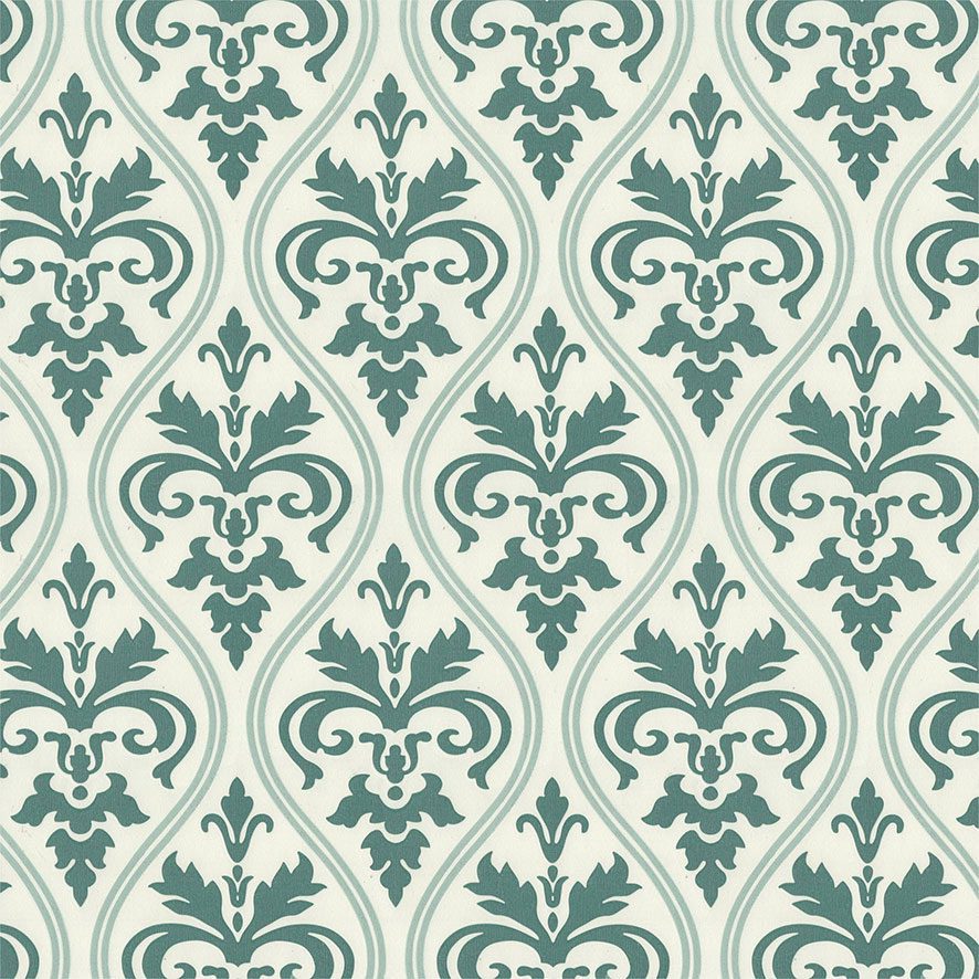 Sản phẩm sở hữu sự kết hợp hài hòa giữa nền màu trắng ngà (off-white) thanh lịch và họa tiết màu xanh cổ vịt (muted teal) hoặc xanh lục lam trầm đầy cuốn hút. Nền trắng ngà đóng vai trò làm sáng không gian, tạo cảm giác rộng rãi và thoáng đãng. Trong khi đó, họa tiết xanh cổ vịt mang đến chiều sâu, sự sang trọng và một chút hoài niệm. Ngoài ra, có thể nhận thấy các đường viền ogee bao quanh họa tiết chính sử dụng một tông xanh nhạt hơn, gần với màu xanh xô thơm (sage green) hoặc xanh bạc hà phai, tạo nên sự chuyển tiếp mềm mại và tăng thêm tính đa sắc cho tổng thể. Sự kết hợp màu sắc này linh hoạt, phù hợp với cả không gian có nguồn sáng tự nhiên dồi dào, làm nổi bật vẻ tươi sáng, lẫn không gian cần tạo điểm nhấn ấm cúng, sang trọng khi được chiếu sáng nhân tạo phù hợp.