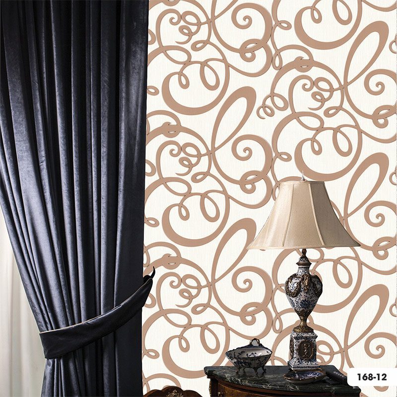Họa tiết trên Vải Dán Tường Harmony Vision 168-12 là những đường nét uốn lượn, xoắn mềm mại, được lấy cảm hứng từ phong cách tân cổ điển hoặc baroque cách điệu. Những đường cong này không quá mảnh mai hay quá đồ sộ, mà có độ dày vừa phải, tạo nên sự cân bằng và hài hòa. Màu sắc của họa tiết là tông nâu vàng nhạt hoặc beige ấm áp. Màu nâu vàng này không rực rỡ mà trầm ấm, có thể ẩn chứa một chút ánh kim nhẹ nhàng khi có ánh sáng chiếu vào, tạo hiệu ứng lấp lánh tinh tế mà không hề phô trương. Hiệu ứng ánh kim này tăng thêm vẻ sang trọng và thu hút, làm cho bức tường trở nên sống động và có chiều sâu hơn. Đặc biệt, họa tiết được làm nổi (embossed) nhẹ so với bề mặt nền. Khi lướt tay qua, bạn sẽ cảm nhận được sự khác biệt về kết cấu giữa nền vải mịn và họa tiết nổi mềm mại. Sự tương phản về kết cấu này là một điểm nhấn độc đáo, làm tăng tính thẩm mỹ và giá trị của sản phẩm. Các đường nét họa tiết được sắp xếp một cách có trật tự và lặp lại nhịp nhàng, tạo nên một tổng thể hài hòa, không gây cảm giác rối mắt hay nặng nề.