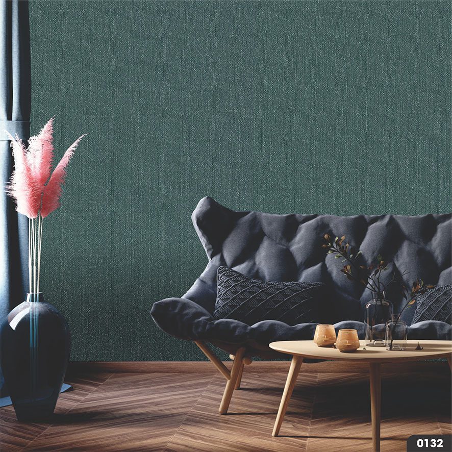Vải Không Dệt Dán Tường Tango 0132 cuốn hút ánh nhìn ngay từ cái chạm đầu tiên bởi tông màu chủ đạo là xanh cổ vịt đậm (dark teal) hoặc xanh rêu sẫm. Đây là một sắc xanh có chiều sâu, được pha trộn đầy tinh tế giữa xanh lục, xanh lam và một chút xám, tạo nên một vẻ đẹp trầm lắng, bí ẩn và vô cùng sang trọng. Màu sắc này không quá chói chang nhưng đủ sức tạo điểm nhấn ấn tượng, mang đến cảm giác ấm cúng và riêng tư cho căn phòng.
